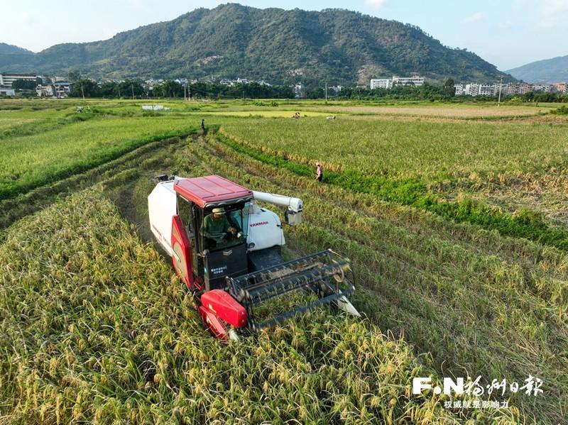 闽侯鸿尾乡水稻机械化收割效率高。记者 池远 摄
