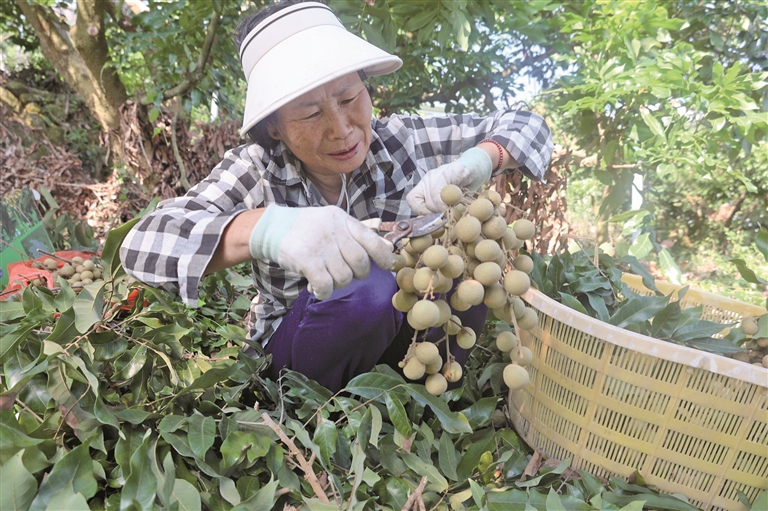 目前,下白石镇特晚熟龙眼实现规模化种植,鲜果年总产量约5000吨,产值近6000万元。