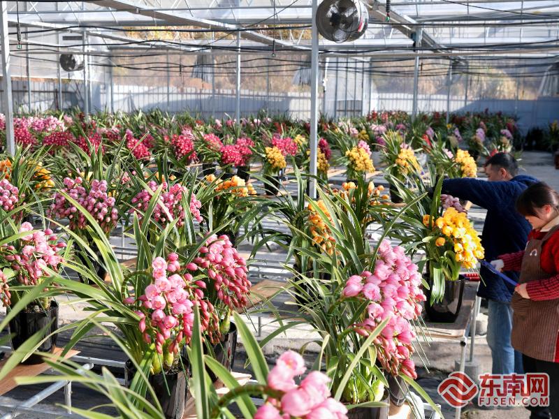 周宁县浦源镇上洋村的紫馨兰园花卉有限公司花卉基地内,工作人员进行修剪。汤文娟 摄