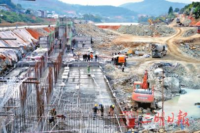 三月七日,尤溪县汶潭水利枢纽工程3#闸墩在加紧施工。汶潭水利枢纽工程是我省“十三五”新开工重大水利建设项目,也是市重点项目,总投资约五点四亿元,工期三十个月。自去年十一月动工以来,项目团队通过要素保障、一线推进、月跟踪协调、通报问责等机制,实行“挂图作战”,项目进展顺利。目前,已完成投资六千五百万元,子围堰填筑六百二十七米,土石方填筑、清运五点三万立方米,右岸导流墙、消力池、3#闸墩等砼浇筑一点五万立方米。