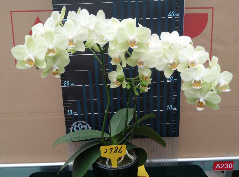 钜宝绿水晶:花径6.5cm,花梗高度30cm,叶片间距30cm,花色为黄绿色,花色新颖,易多梗分叉,开花性佳,苗株半直立,易栽培管理。