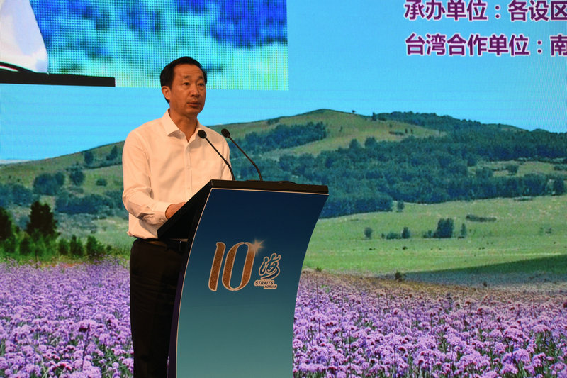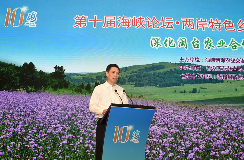 中国农业新闻•福建三农网厦门6月5日讯(刘文标)6月5日,第十届海峡论坛·两岸特色乡镇交流暨促进“双新双创”发展对接会在厦门举行。农业农村部总农艺师马爱国、福建省政府副省长李德金、台湾自然资源保育技术服务基金会董事长陈志清出席对接会并致辞,福建省农业厅厅长黄华康主持大会开幕式,福建省农业厅副厅长李岱一等出席,两岸业界对接企业的代表350余人参加了活动。