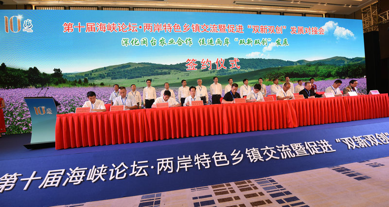 会议期间,共有62对闽台特色乡镇,促进“双新双创”发展项目进行对接并签订合作协议。在与会领导、嘉宾的见证下,15对合作项目上台现场签约。7位嘉宾围绕促进“双新双创”发展主题作了内容丰富的精彩演讲。会后,各地还将开展“台湾农民福建行”活动,组织邀请台湾对接企业代表、台湾农业专家、杰出农民、优秀农村实用人才分别赴我省各设区市和6个国家级台湾农民创业园实地参访交流,在各台创园举办“台湾青年农民中华农耕文化福建行”活动,增进两岸青年农民的交流与互动。