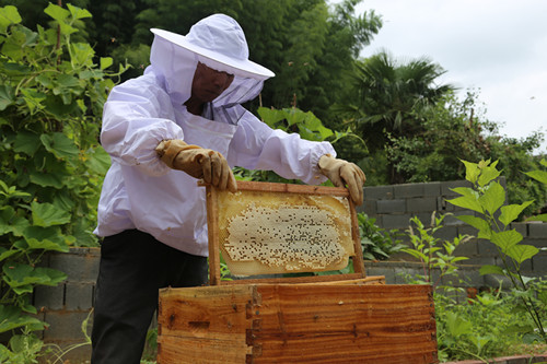 东华山养蜂专业合作社2012年成立,通过养蜂产业扶贫,增加农民收入,实现乡村振兴。据了解,近年来,济村大力实施乡村振兴战略,充分利用生态优势,发展蜜蜂养殖产业,创立了“支部+合作社+基地+电商+贫困户”模式,助力农民增收致富。2012年5月,东华山养蜂专业合作社成立,吸收三村及上龙头、长坊、济村、神坛坝等周边村民200人(其中贫困户5户13人)入社,养蜂总量超过1600箱,年产蜂蜜5万多斤,产值超过200万元。