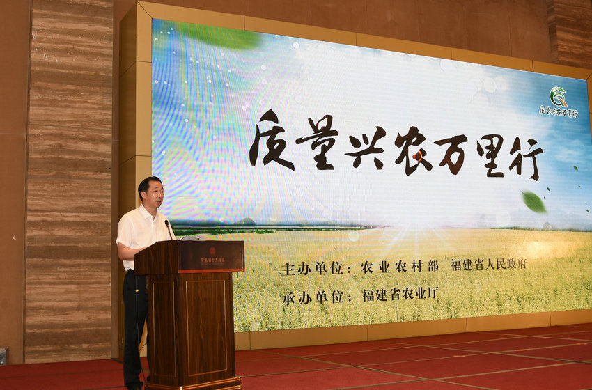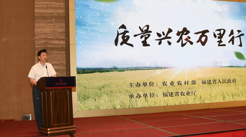 7月10日,由农业农村部和福建省人民政府主办、省农业厅承办的2018年质量兴农万里行活动启动仪式在福州举行。农业农村部党组成员宋建朝,副省长李德金出席活动并讲话。来自团中央、卫生健康委、市场监督管理总局、海关总署和中国科协等相关部委,农业农村部相关司局有关负责人及省农业厅厅长黄华康、副厅长王智桢等共计300多人参加启动仪式。农业农村部农产品质量安全监管局局长广德福主持启动仪式。