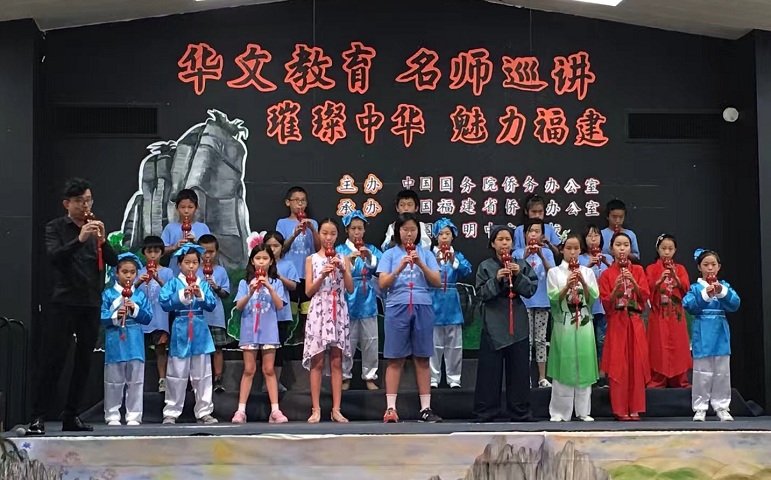 在为期两周的巡讲活动中,来自福建泉州师范学院、福建幼儿师范高等专科学校的4位优秀教师为师生们带来了原汁原味的福建民间技艺。陈霞明副教授结合武术长拳和地方传统五祖拳的基本技法串编武术操、武术旗进行传授;叶倩副教授讲授中国民歌,结合启明中文学校的课本剧《马兰花》排练《马兰谣》等民歌;陈纯灵讲师带来极具中国民族特色的乐器葫芦丝,并根据不同年龄特点设计体验课;杨凌燕教师讲授“妆糕人”传统民间艺术。巡讲团的精心授课受到师生和家长们的热烈欢迎。