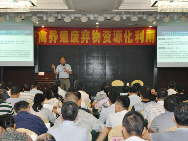 2018年8月16日全省畜禽养殖废弃物资源化利用培训班在福州举办,参加培训班学员有各市、县(区)农业局分管领导、畜牧站站长和省畜牧总站全体同志共计190人,培训班分别邀请福建农林大学梁学武教授做《奶牛生态养殖发展前景及关键技术》讲座、省畜牧总站教授级高级畜牧师卓坤水做《异位发酵床处理猪场粪污综合技术》讲座、福清丰泽农牧科技有限公司洪五一总经理做《猪场粪污资源化利用——种养结合模式》典型经验介绍,培训班最后由省畜牧总站黄宏源站长讲解《福建省畜禽养殖废弃物资源化利用工作考核办法(试行)》及《关于做好2017年度畜禽养殖废弃物资源化利用考核迎检工作的通知》,通过培训,全体学员对畜禽粪污资源化利用知识有进一步认识和提高,,必将对全省畜禽粪污资源化利用工作起很好的推动作用。