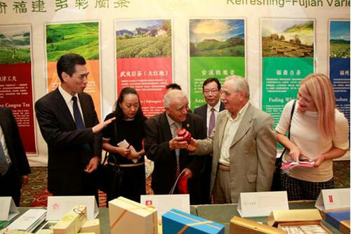 启动仪式后,举办了“海丝茶路·茉莉香韵”茶会,我省大闽、八马、永生、品品香、正山堂和春伦等六家重点茶叶企业负责人分别介绍了我省茶叶深加工产品和安溪铁观音、武夷岩茶、白茶、红茶、福州茉莉花茶等茶类,福建茶叶优异的品质、深厚的茶文化底蕴,得到与会来宾的极大赞誉和希腊各界的广泛关注。