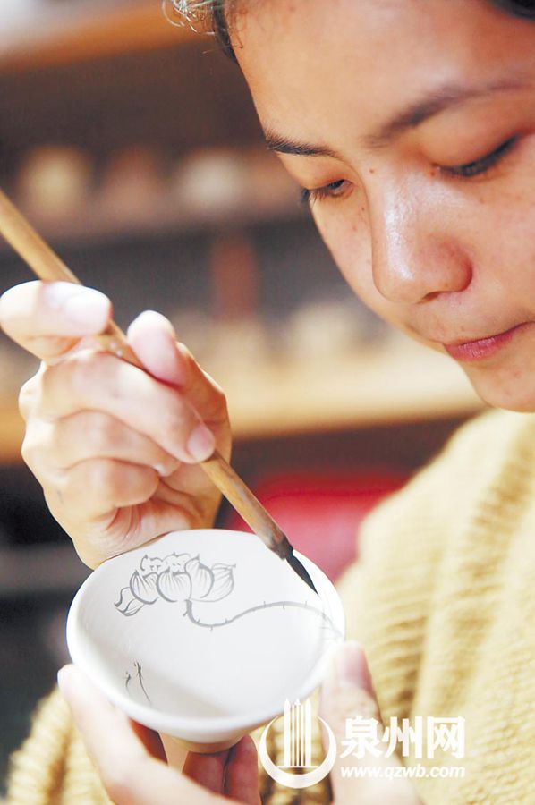 陶瓷绘图,异于平面作画,依据弧度顺势而为,更要小心是否粗细得当、浓淡相宜。