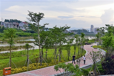 在间隙,发现,虽然该工程现在还没有竣工投用,但偶尔有散步、跑步运动人的身影路过。正在跑步运动的市民告诉,自己家就住在这不远处,想着附近的居民马上就能在这么好的环境中,全家一起散步、运动、玩耍,就觉得很欢乐。