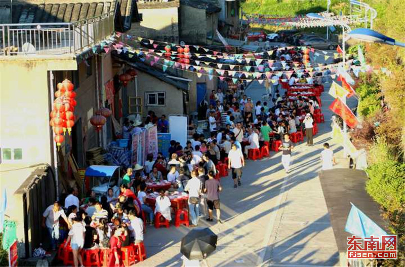 陈峭文化节上,游客品尝“百家饭”。叶建伟 摄