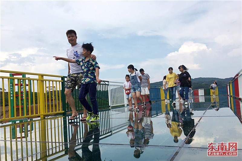 游客在苏家山村高空玻璃栈道游览。 福建日报 李向娟 黄起青 林志勇 郑文敏 摄