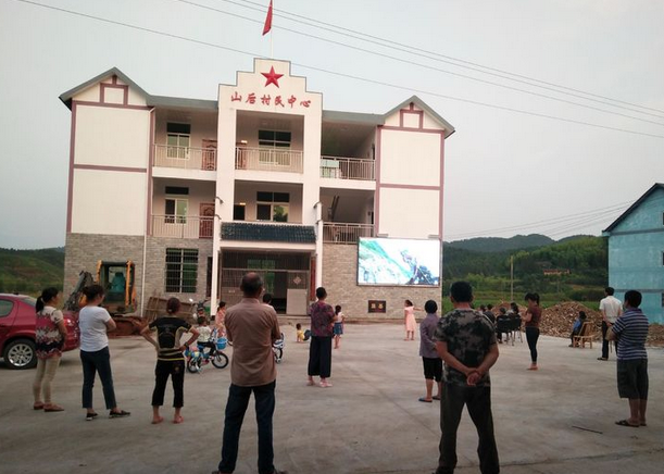 图为村里装了LED屏,丰富了村民的业余生活!