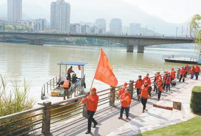 沙溪河畔,百姓护河志愿服务队在巡河。周志鸿摄