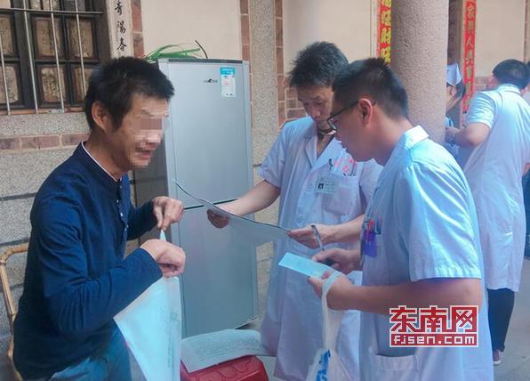 医生入户义诊(涵江医院 供图) 启动仪式结束后,涵江医院医疗服务团队立即前往梧塘镇前东坡村开展入户义诊活动。 |