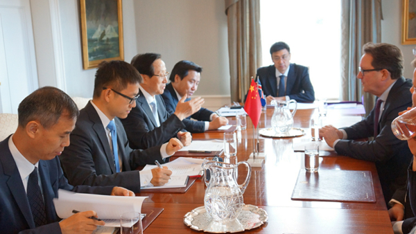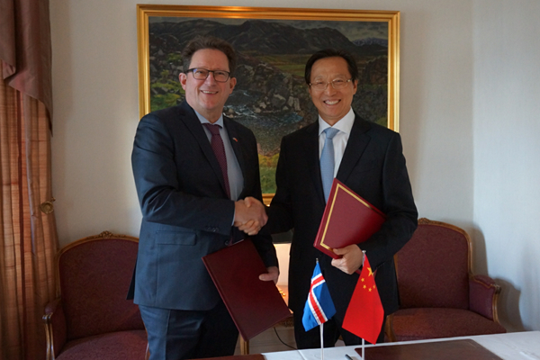 本网讯 当地时间10月15日上午,农业农村部部长韩长赋在雷克雅未克与冰岛渔业和农业部长克里斯蒂安·索尔·尤利于松举行会谈,并共同签署了《关于农渔业合作的谅解备忘录》。
