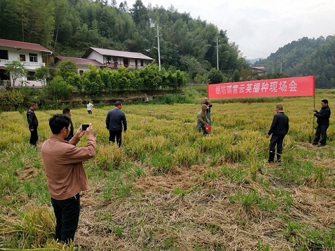 10月19日上午,明溪县胡坊农技站组织了各村农技员、种植大户等20余人召开紫云英百亩示范片播种现场会。