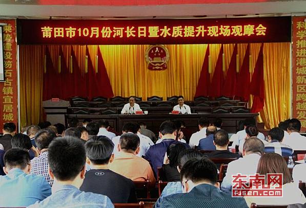 莆田市召开10月份河长日暨水质提升现场观摩会 东南网莆田10月24日讯( 王龙风 李剑军 文/摄)10月23日上午,莆田市召开10月份河长日暨水质提升现场观摩会。会议深入贯彻落实习近平总书记治理木兰溪的重要理念,并深入学习领会习近平总书记关于实施乡村振兴战略的重要论述,贯彻落实市委书记、市河长林宝金在《中国水利报》上发表的署名文章《动真碰硬治水治污 真抓实干管河护河》的内容精神。副市长、市副河长吴健明出席会议并讲话。市河长办主任黄德元主持会议。