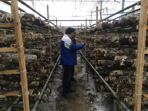 在安砂镇曹田村,一座座黑色篷布遮盖的香菇培育大棚映入眼帘,大棚内整齐划一的菌棒上,大朵大朵的棕色香菇长势喜人,这些大棚是该村陈村长今年新发展起来的香菇种植基地。