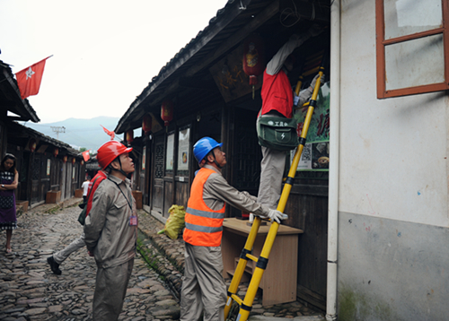 本网讯 11月8日,国网长汀县供电公司组织党员服务队技术人员专程走进淘宝街,了解用户用电需求,免费帮用户检查客户端线路,排除存在用电隐患,提前为淘宝街电商冲刺“双十一”做好用电保障。