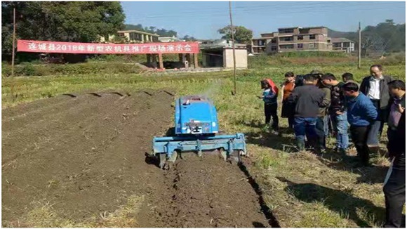 11月30日,连城县农机站在庙前镇坪头村举办甘薯机械化杀秧、收获作业现场会及新型农机具推广演示会。市农机总站领导、市农科所领导、县农机站技术人员、各乡(镇)农机站负责人、甘薯种植大户、农机大户及农机厂家、农机经销商共100余人参加。专家现场讲授甘薯机械化杀秧、收获作业技术要领;技术人员现场操作、演示甘薯机械化杀秧、收获作业技术;厂家和经销商现场演示田园搬运管理机、自走式风送喷雾机、遥控无人驾驶拖拉机、再生饲料颗粒机和薯类浆渣分离机等新型农机具。