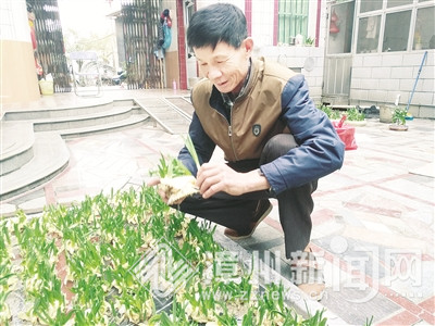 欧再治在管理水仙花