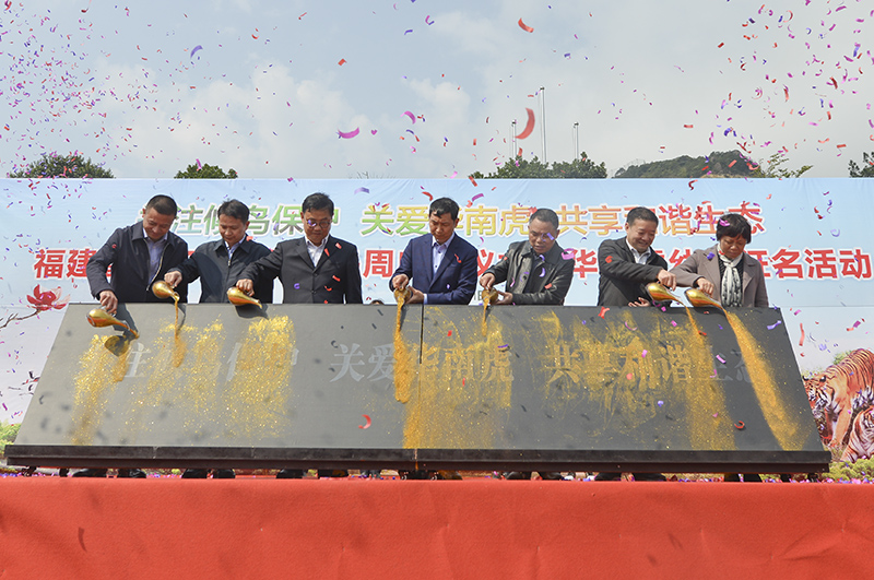 今年3月25日-31日是我省第37届爱鸟周,适逢梅花山华南虎繁育研究所成功繁育华南虎幼崽2只。为提升全民保护野生动植物意识,形成爱鸟护鸟的良好社会氛围,持续推动公众对华南虎等极度濒危物种保护的关注和参与,省林业局联合国家林业和草原局驻福州森林资源监督专员办事处(国家濒危物种进出口管理办公室福州办事处)、省野生动植物保护协会、龙岩市人民政府,于3月21日在梅花山·中国虎园举办“福建省第37届爱鸟周启动仪式暨华南虎幼虎征名活动”。国家林草局驻福州专员办李彦华巡视员、省林业局唐忠副巡视员、省野生动植物保护协会林少霖会长、龙岩市政府办公室沈庆钟副主任、龙岩市林业局张田华局长等出席活动。