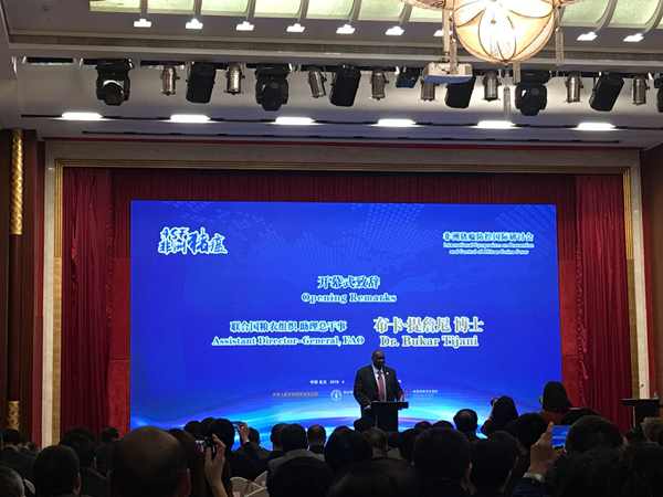 图为 联合国粮农组织助理总干事 布卡·提詹尼博士在开幕式致辞。 冯克 摄