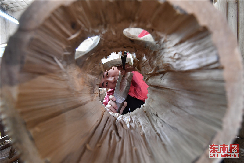 制作神像十分复杂,要经历凿雕、挖空、打磨、上漆、上色等一系列工序。福建日报 林辉 陈鑫炜 黄瑜鹏 摄