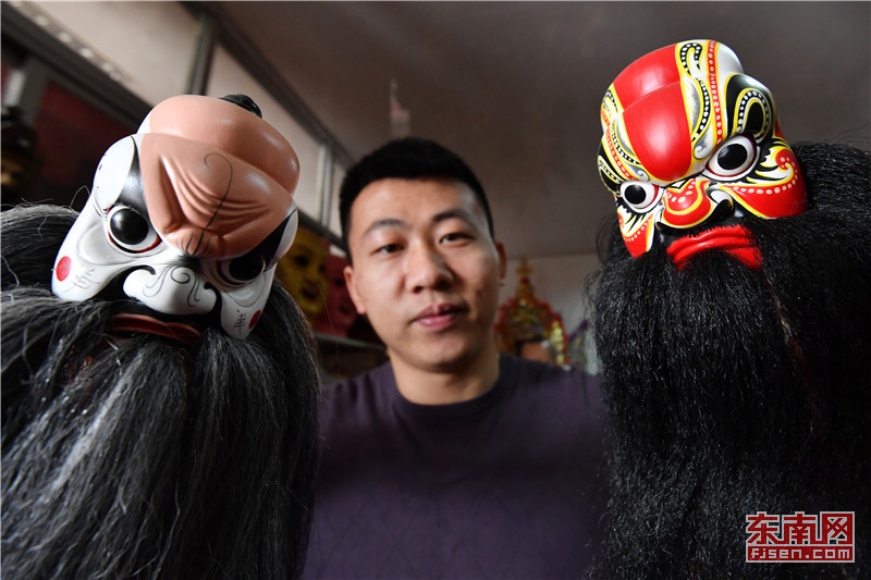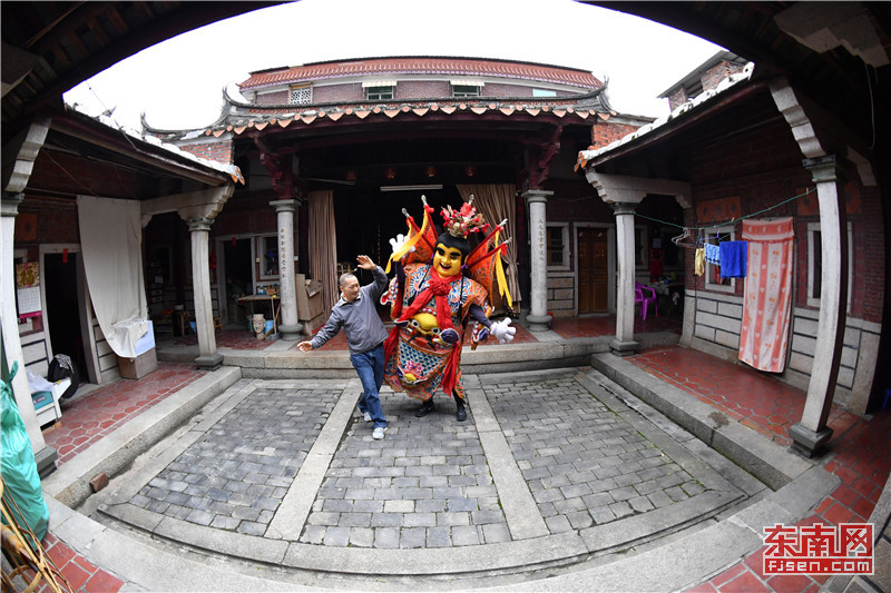身披五彩衣,头戴锦冠,脚踩虎头靴,三太子神像憨态可掬。日前,在南安市梅山镇的自家老宅里,陈树泽又和父亲陈志忠开始排练。像这样风靡海峡两岸的“电音三太子”,正是陈树泽的作品之一。