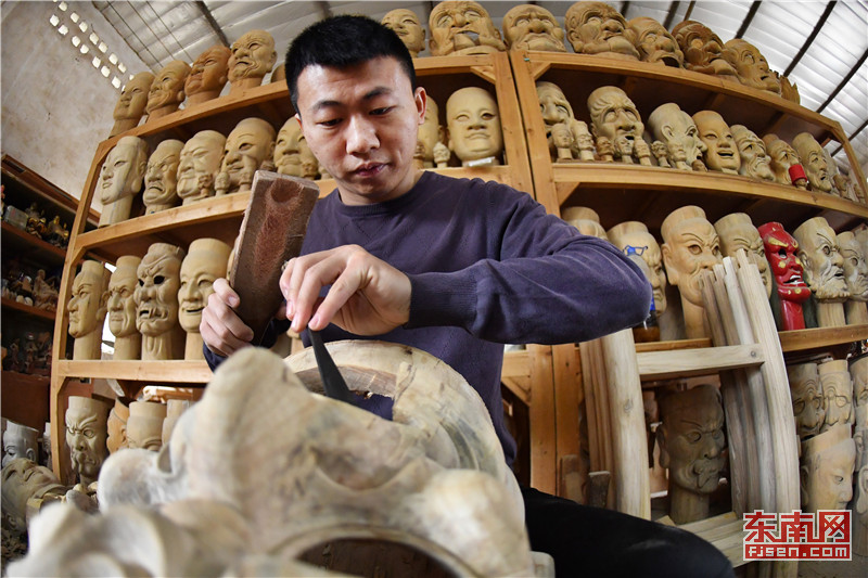 像这样的小型木偶头,是陈树泽设想中的传统雕刻技艺的创新路径之一。福建日报 林辉 陈鑫炜 黄瑜鹏 摄
