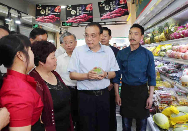 考察途中,李克强临时停车走进一家水果店,询问水果涨价情况和原因,他叮嘱随行的地方和部门负责同志说,现在市场供求总体平衡,要关注部分关系群众日常生活的产品价格变动情况,采取适当措施,保障供应充裕、价格合理。