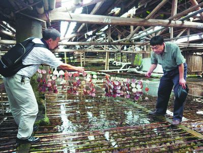 福鼎市扶贫开发协会负责人与农业专家顾问团一行深入沙埕镇大白鹭村,对紫菜产业发展状况进行调研。林冰 摄