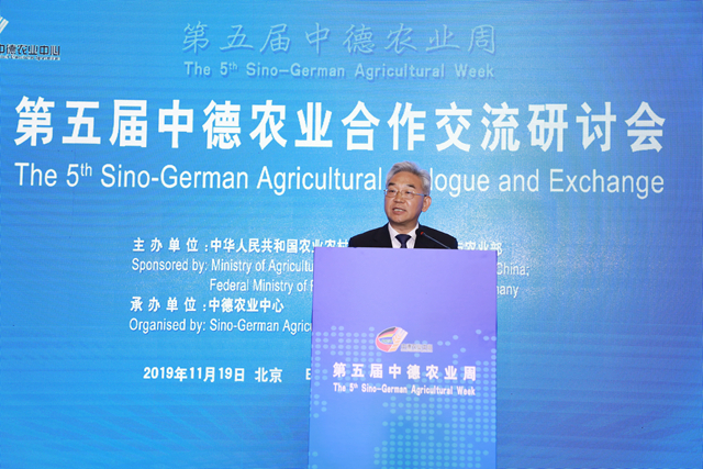 11月19日,农业农村部副部长张桃林和德国联邦食品及农业部议会国务秘书福赫特尔在京共同出席第五届中德农业合作交流会并致辞。
