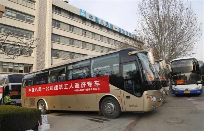 中国建筑派出济南市建筑工人返济“点对点”专车。(资料图)