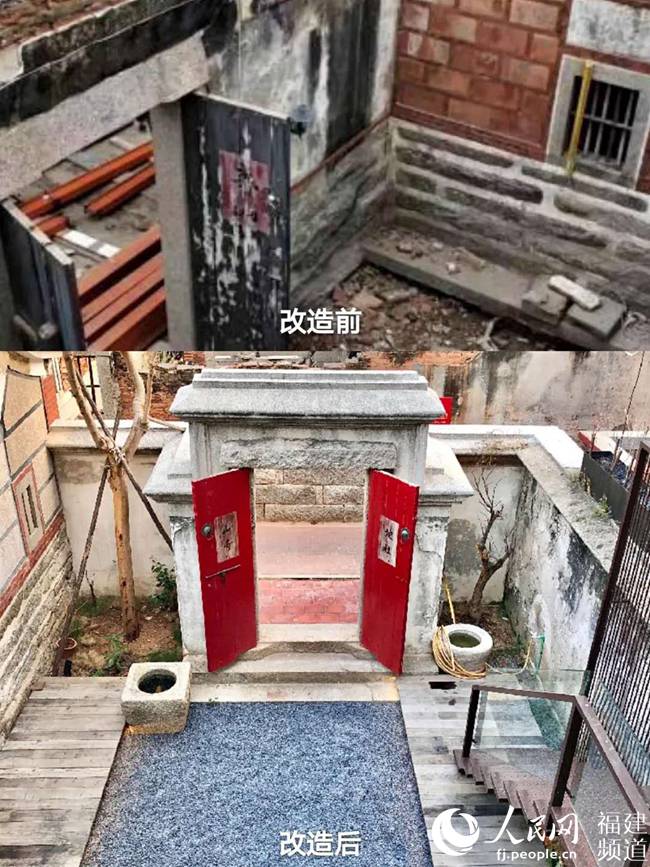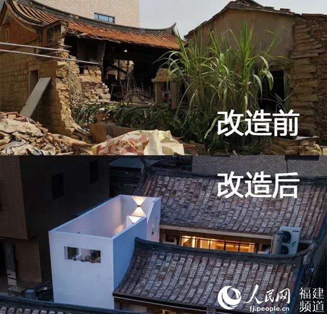 改造过程中,危房古厝在社区等多方努力以及海外业主、本地侨胞亲属共同配合下完成托管,并得到古厝特色“共管共建”文创改造策划,有机融入了闽南古厝风韵和当代元素,让古厝修缮再生活化古厝的古今文脉关联。