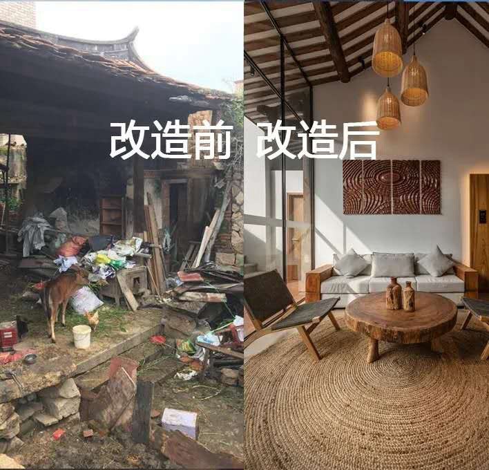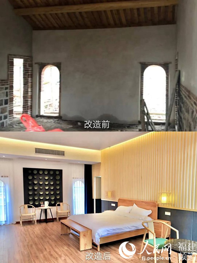 而在新店镇大宅村,原先残破不堪存在安全隐患的两栋危房也在改造下,以当地火龙果石条、老木板等为元素,糅以香山朱子文化基因,成为精品民宿。