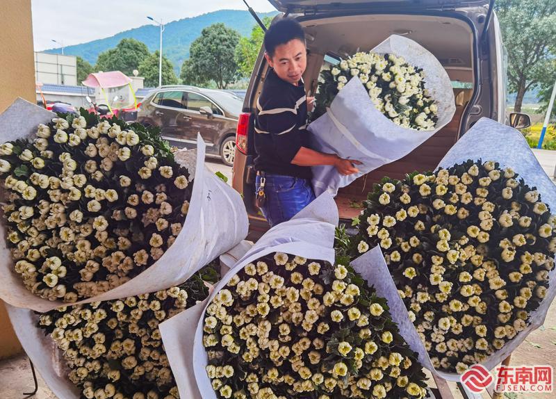 21日,清流县林畲镇花农正在搬运刚采摘下来的白菊,包装好后,这批10万支白菊将发往韩国。据悉,清流县是我国主要鲜切花基地之一,花卉种植面积15046亩,2019年销售收入6.7亿元。6月以来,该县鲜切花国内外订单量不断增多,价格一路上涨,各类鲜切花销售额同比增长50%以上。 福建日报 游庆辉 吴火招 摄
