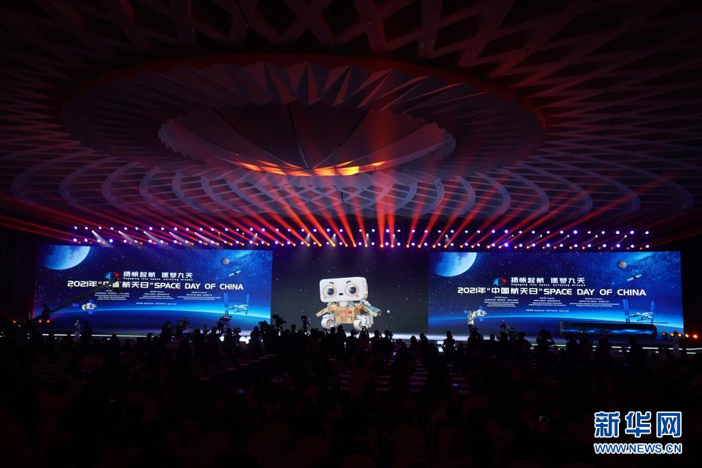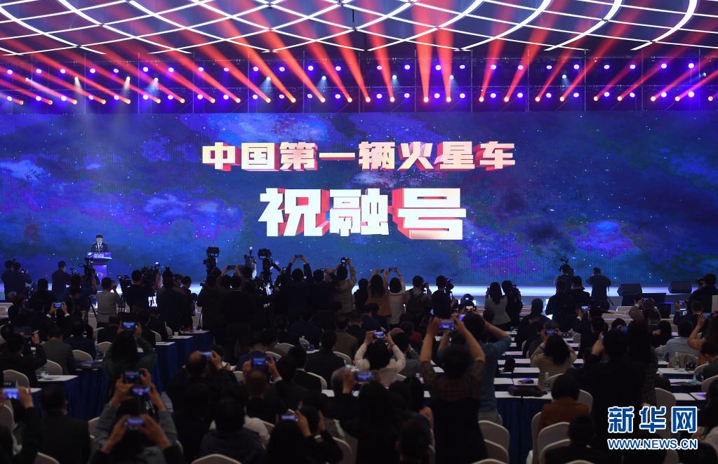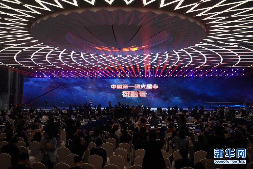 4月24日上午,在江苏南京举行的2021年中国航天日启动暨中国航天大会开幕仪式上,国家航天局正式公布我国首辆火星车命名为“祝融”,全称“祝融号”。新华社 季春鹏 摄
