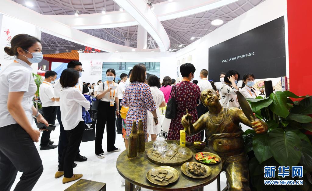 5月7日,参观者在海南国际会展中心各省市自治区展区重庆馆观看展览。