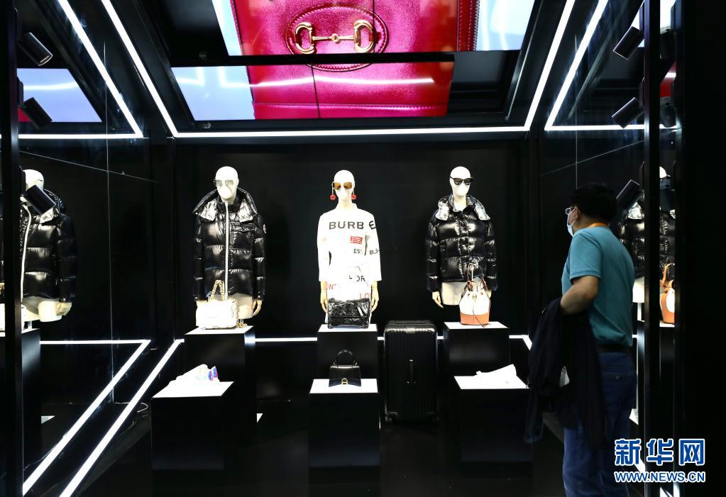 5月7日,人们走过海南国际会议展览中心时尚生活展区法国馆。