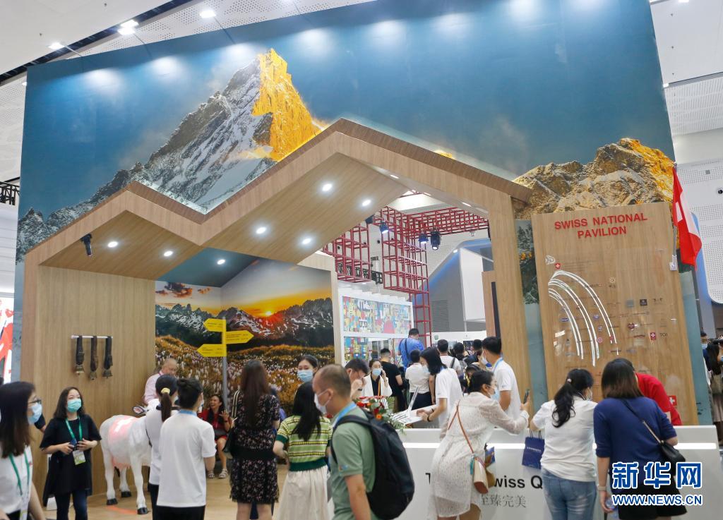5月7日,人们走过海南国际会议展览中心瑞士国家馆。