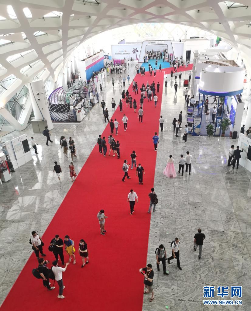 5月7日,参观者在海南国际会展中心各省市自治区展区海南馆观看展览。