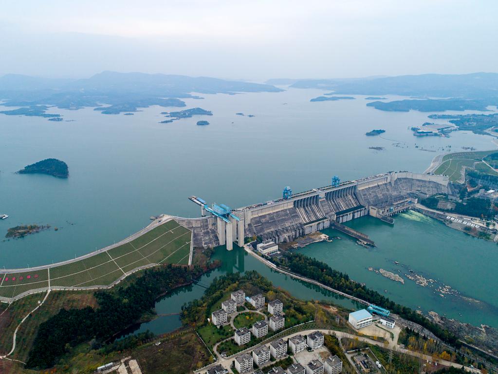 2019年11月26日无人机拍摄的丹江口水库大坝。新华社 熊琦 摄