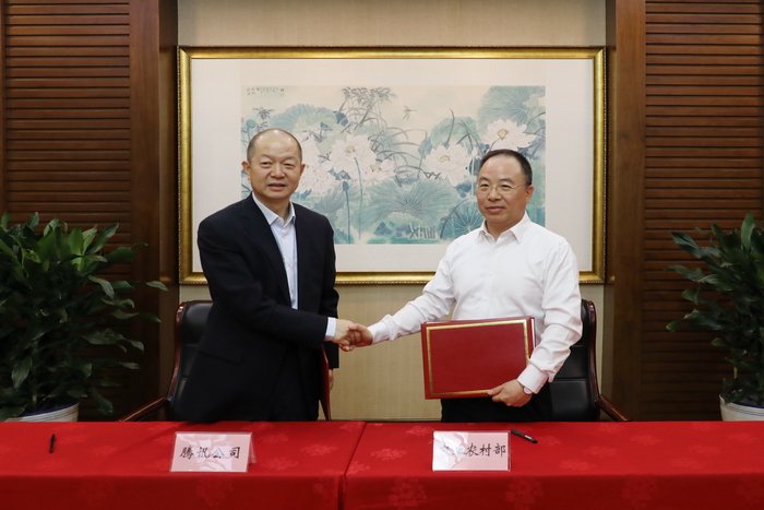 5月24日,农业农村部与腾讯公司在北京签署“耕耘者”振兴计划战略合作协议,双方将面向乡村治理骨干和新型农业经营主体带头人开展培训,共同推进乡村人才振兴。农业农村部党组成员兼中央农办秘书局局长吴宏耀,腾讯公司党委书记、高级副总裁郭凯天分别代表双方签约。