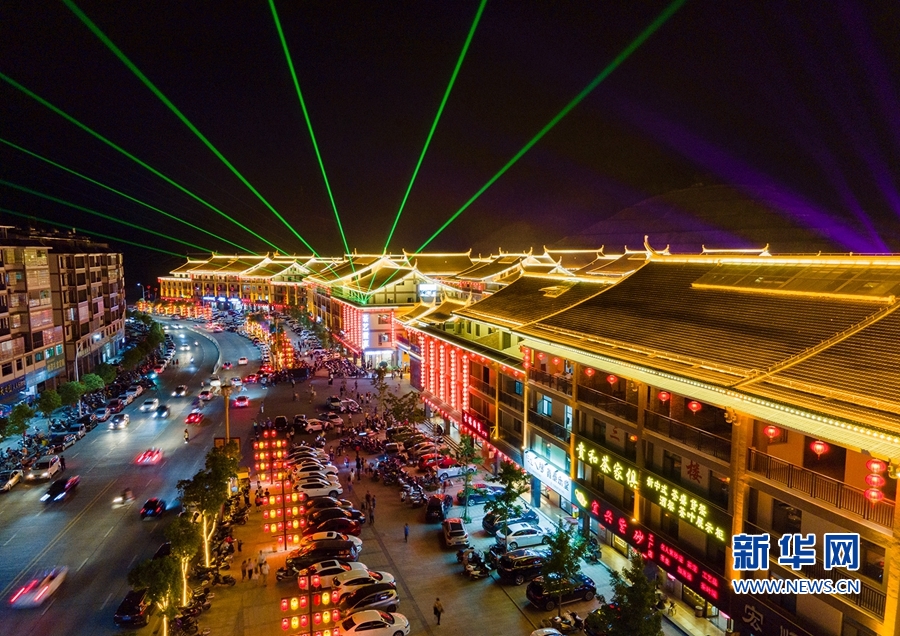 这是德化县中国茶具城古风夜市灯光秀。新华网发( 黄谷莹 摄)