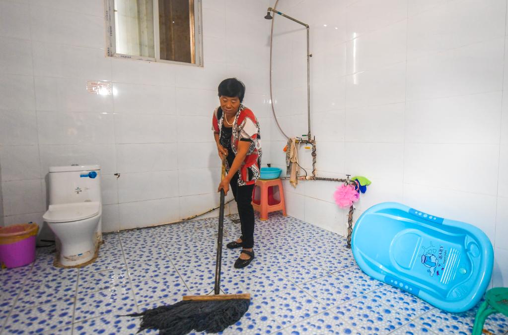 2019年9月10日,河北省永清县三圣口乡第四村村民在自家厕所打扫卫生。新华社 李晓果 摄