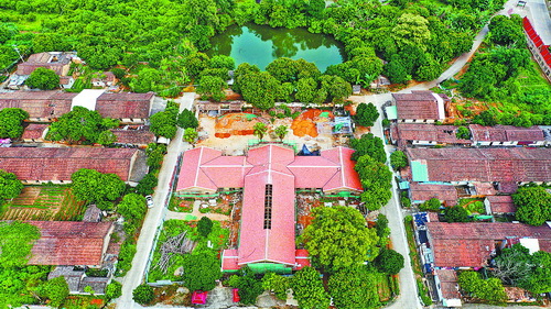 修缮中的竹坝归侨史迹馆(T字型红色楼)。(资料图/东南乡建 提供)
