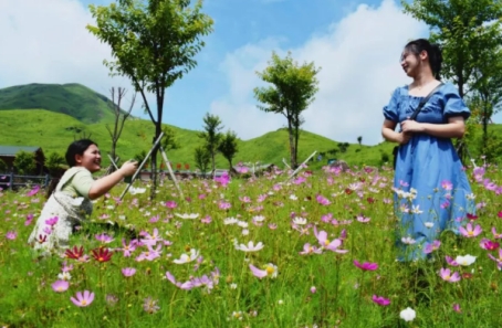 图:鸳鸯草场景区游客拍照打卡