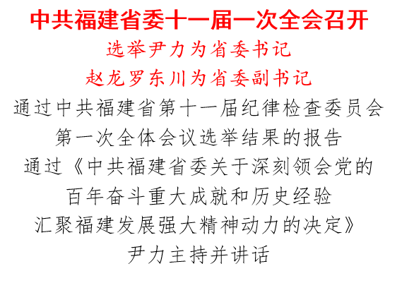 尹力当选为中国共产党福建省第十一届委员会书记,赵龙、罗东川当选为中国共产党福建省第十一届委员会副书记。